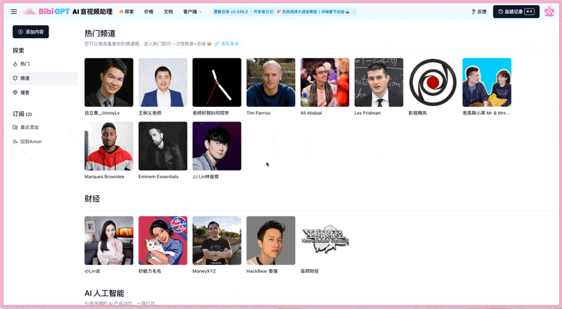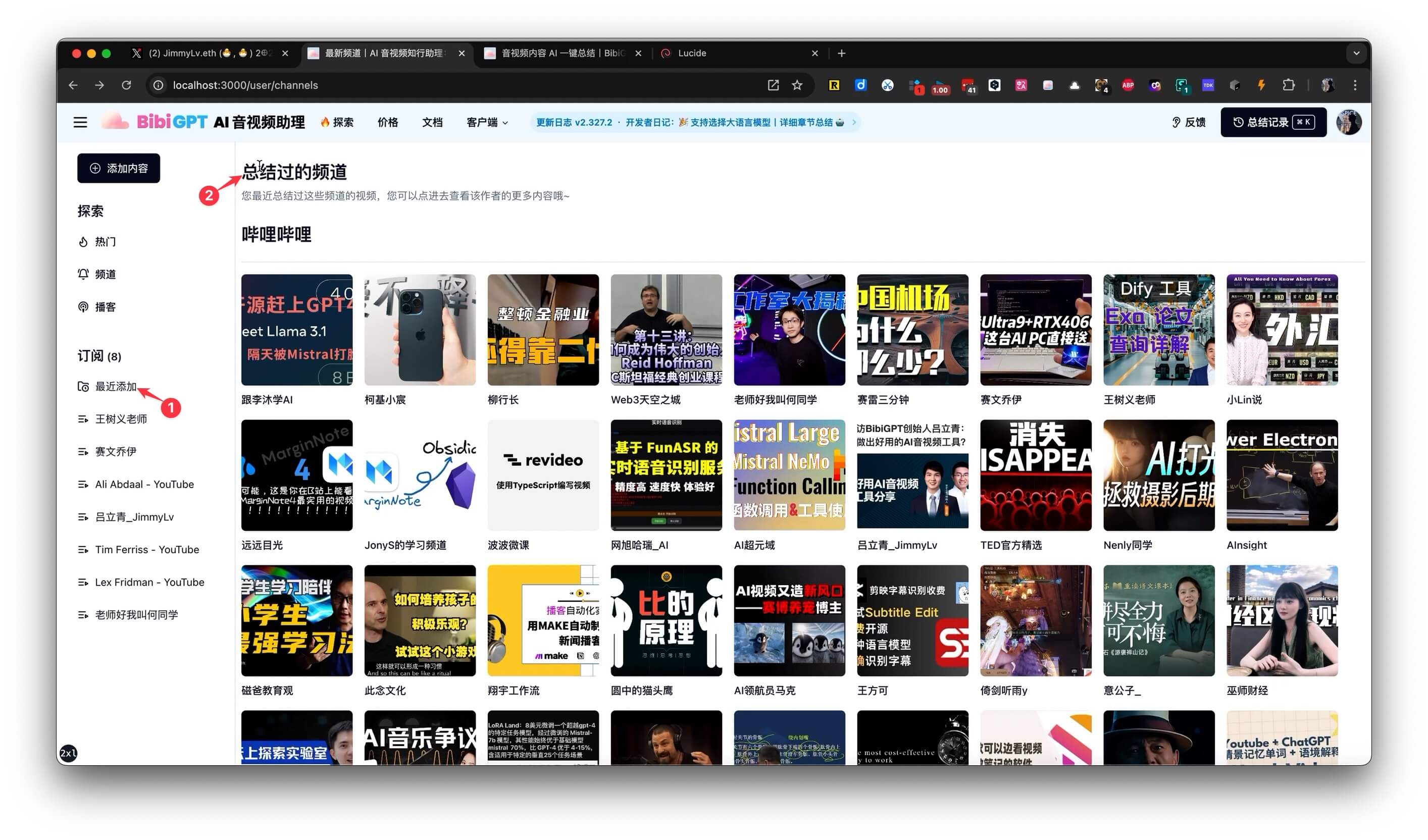 新增的总结过的频道功能让您可以轻松查看所有已总结的视频,方便您随时订阅感兴趣的频道更新。