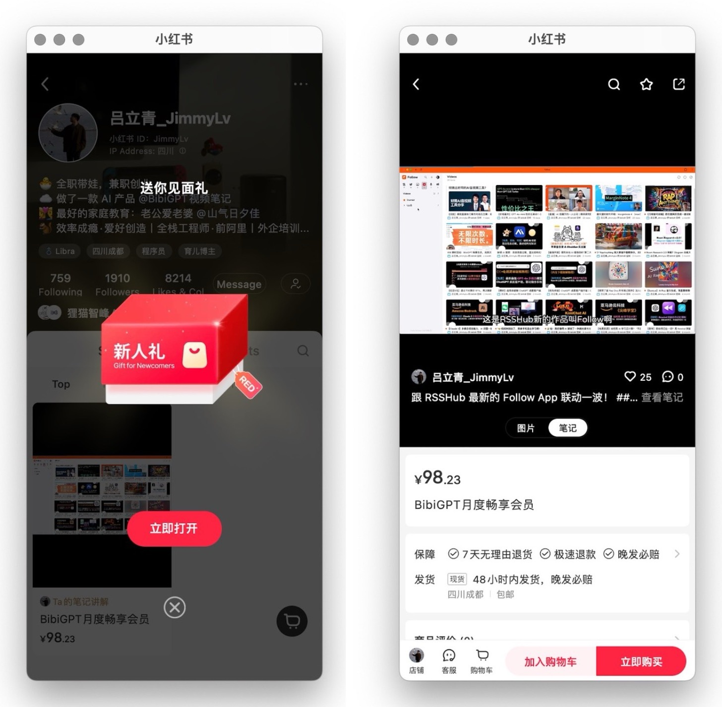 BibiGPT在小红书开店啦! 现在可以在小红书上直接购买会员,享受更多优质服务,新用户还可以领取20元的店铺新人券,快来抢购吧!点击这里访问
