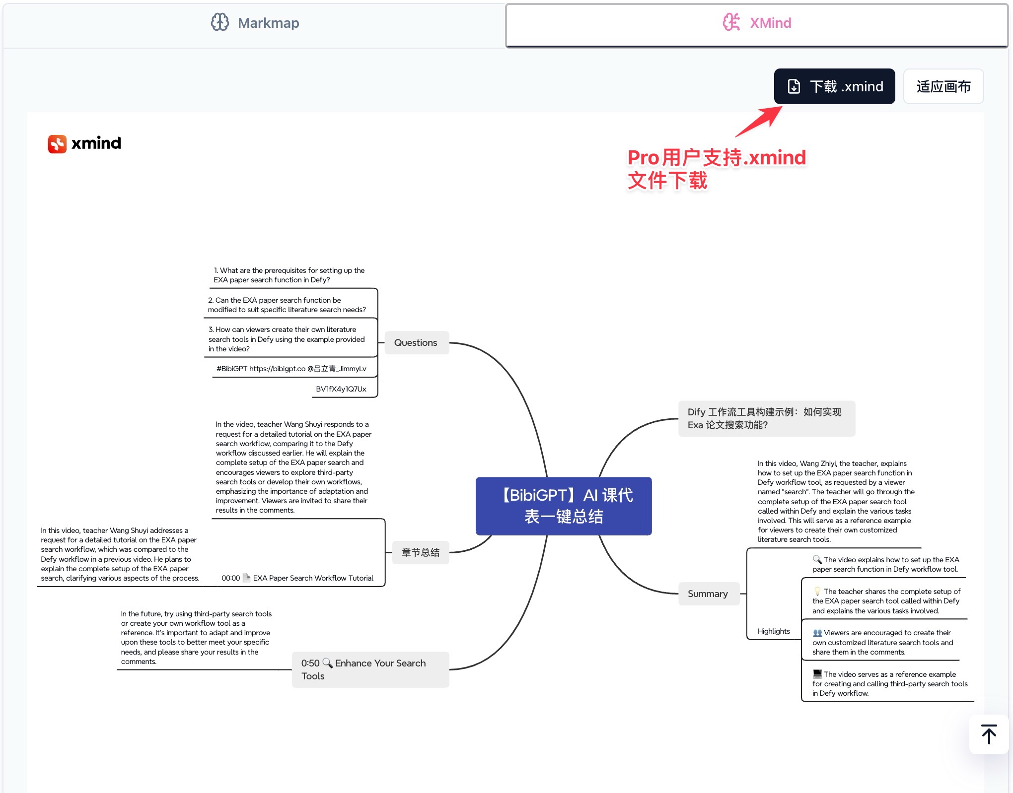 思维导图功能现已全面升级,Pro用户现在可以将思维导图直接下载为.xmind格式,方便在Xmind软件中进行进一步编辑和分享。这项新功能为Pro用户提供了更专业和灵活的思维导图使用体验,让您的创意和想法得到更好的展现和管理。