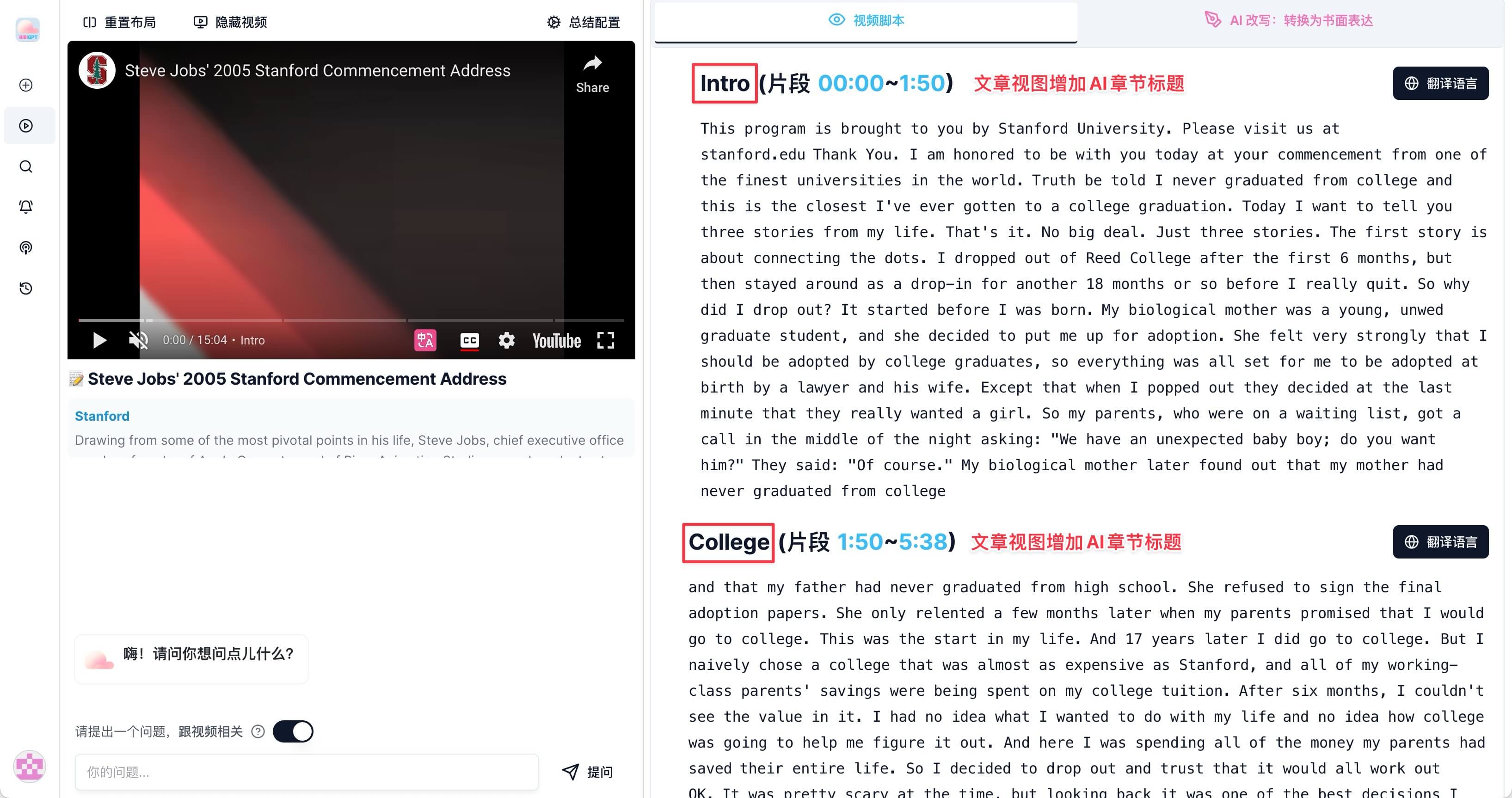 我们很高兴地向您分享本周的产品更新!我们的团队一直在努力提升BibiGPT的功能,以便让您在使用音视频总结工具时体验更加流畅和高效。以下是本周的精彩更新: