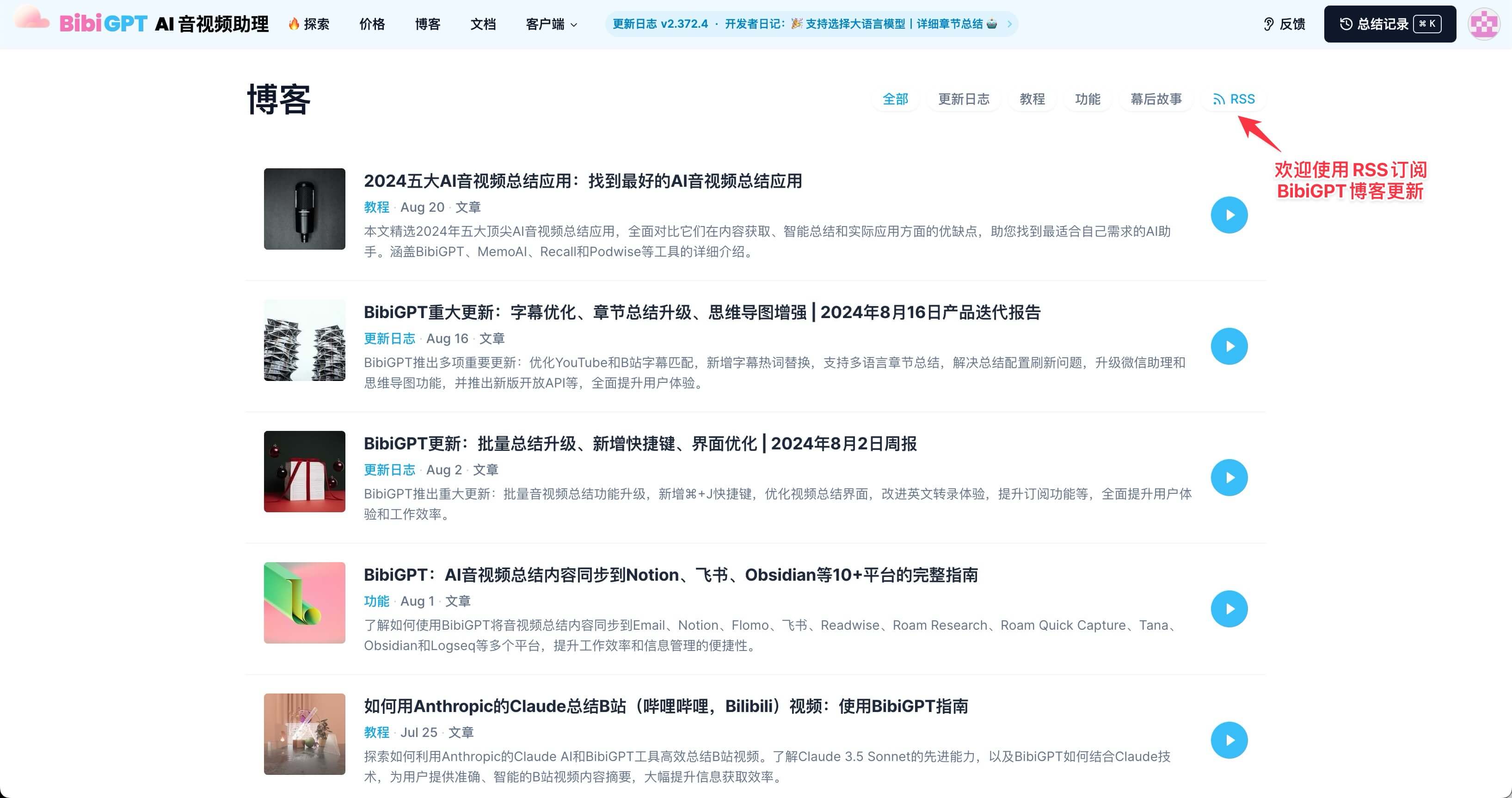 BibiGPT更新:字幕上传总结、AIRSS升级、视频搜索增强 | 2024年8月30日产品迭代报告