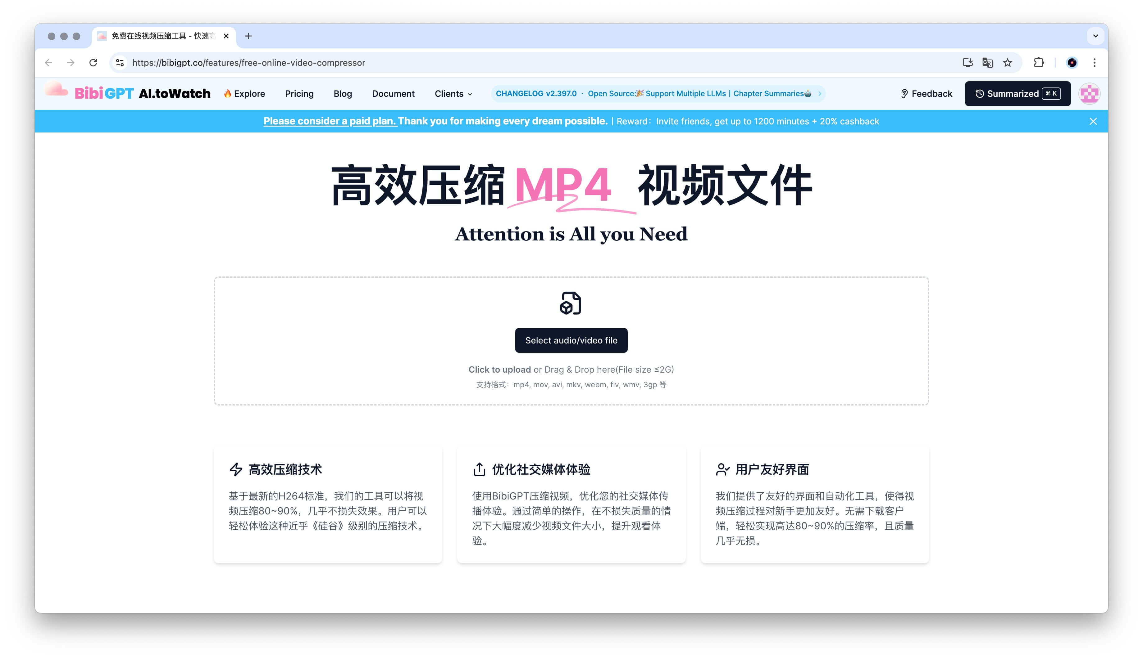 新增免费视频压缩功能
