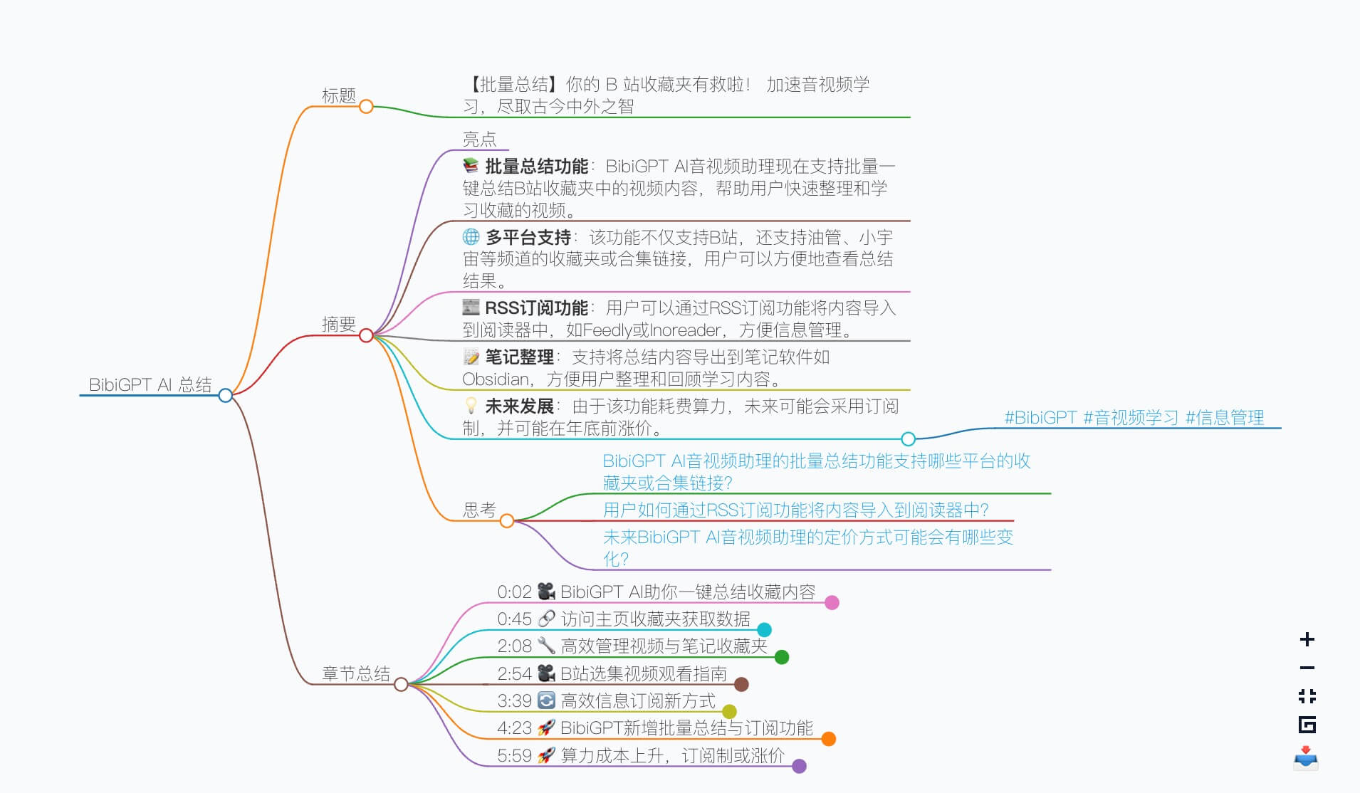 - 优化了markmap中章节总结的显示方式,让您更轻松地获取关键信息。 - 默认设置为折叠状态,您可以根据需要随时展开,快速浏览内容。