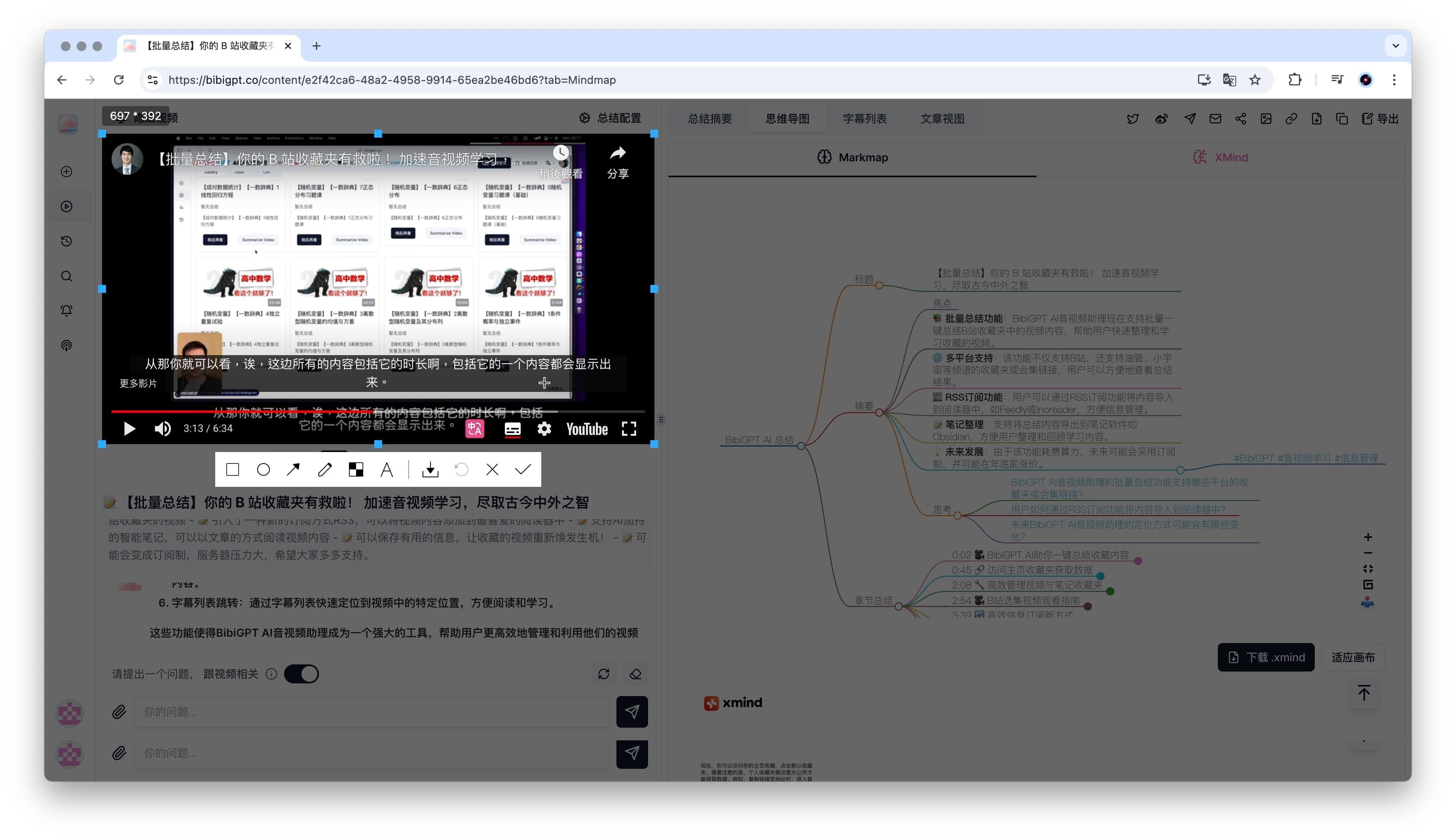 BibiGPT推出多项重要更新,包括播放器优化、思维导图显示改进、VideoSearch应用升级、AI对话增强、新增截图问答和保存功能等。这些更新全面提升了用户在观看、搜索和使用音视频内容方面的体验,让音视频内容更快捷、易搜索、易使用。
