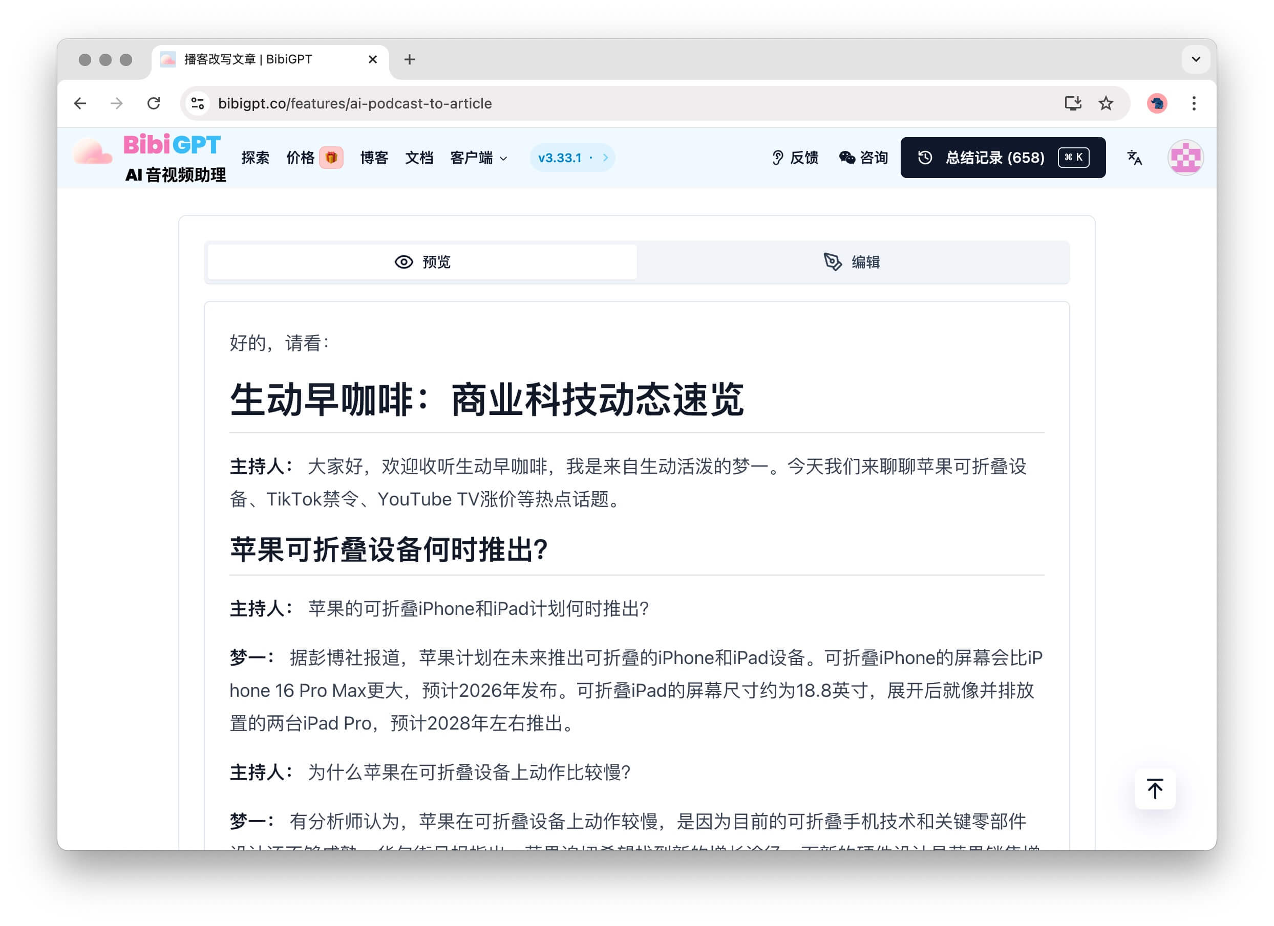 立即访问 BibiGPT播客内容改写功能 开始体验这一全新功能!