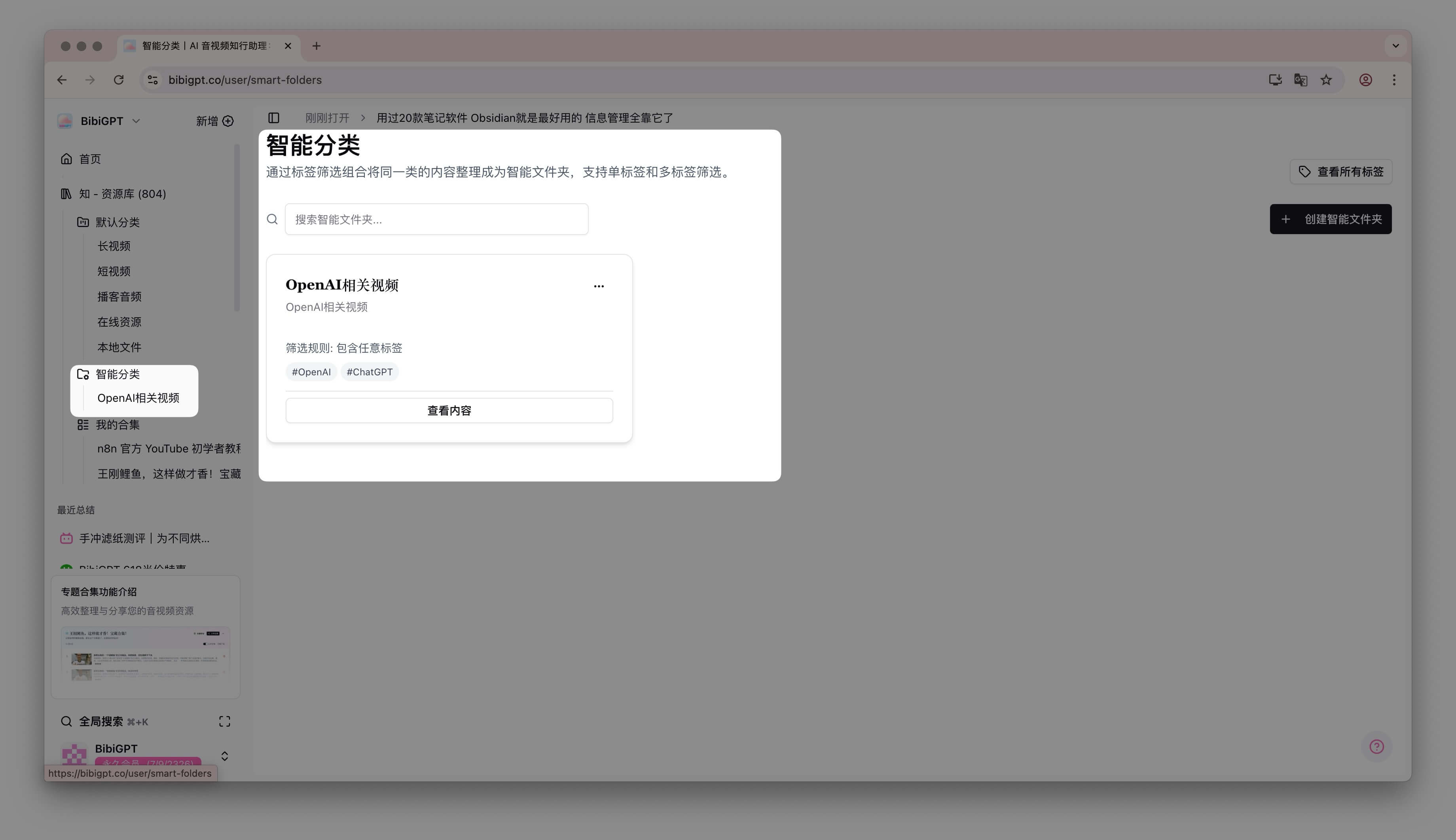 - 合集与智能分类:您可以创建私人或公开的"合集",将相关的视频、文章和笔记归纳整理。更有"智能分类",可根据您设定的标签规则,自动对内容进行分类。