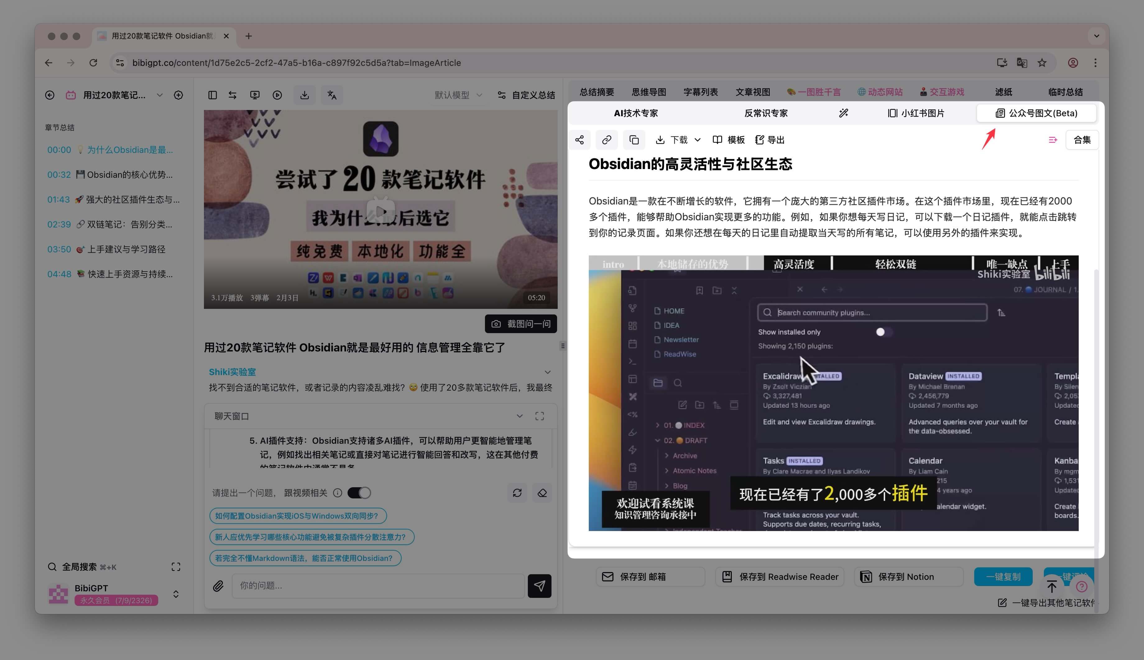 - 公众号图文(Beta):一项专为内容创作者设计的强大功能。目前,我们已向永久会员开放此功能的抢先体验版,一键即可将视频内容转化为排版精美的公众号文章。我们正努力完善这一功能,并计划在未来开放给更多用户,敬请期待!