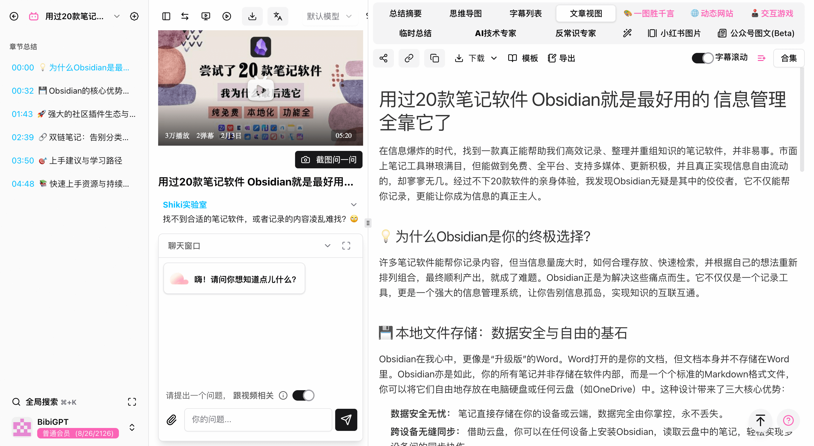 这正是BibiGPT高级功能的用武之地。如果你是一位严肃的知识管理爱好者,我们的专业版将是你的终极武器: