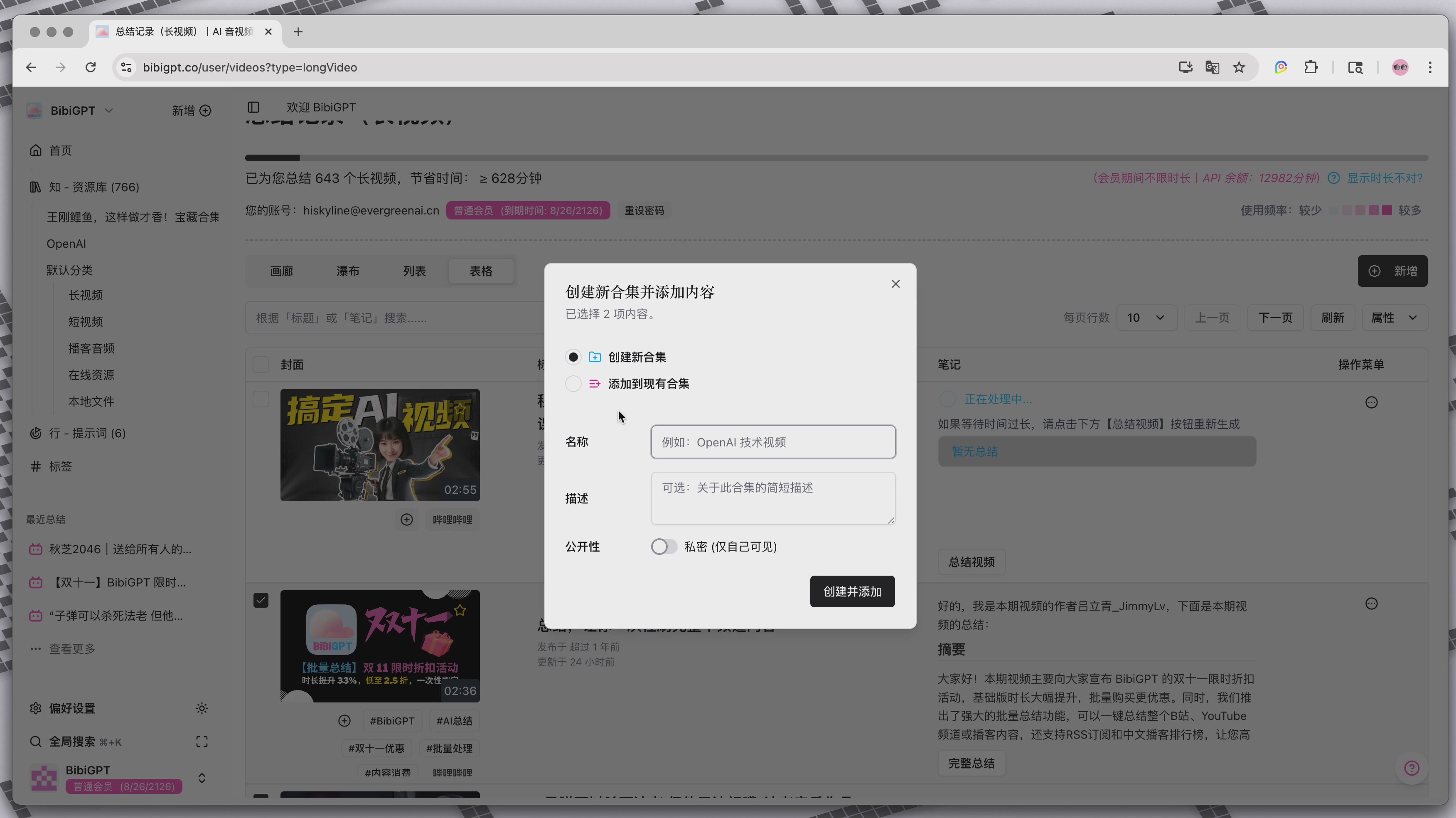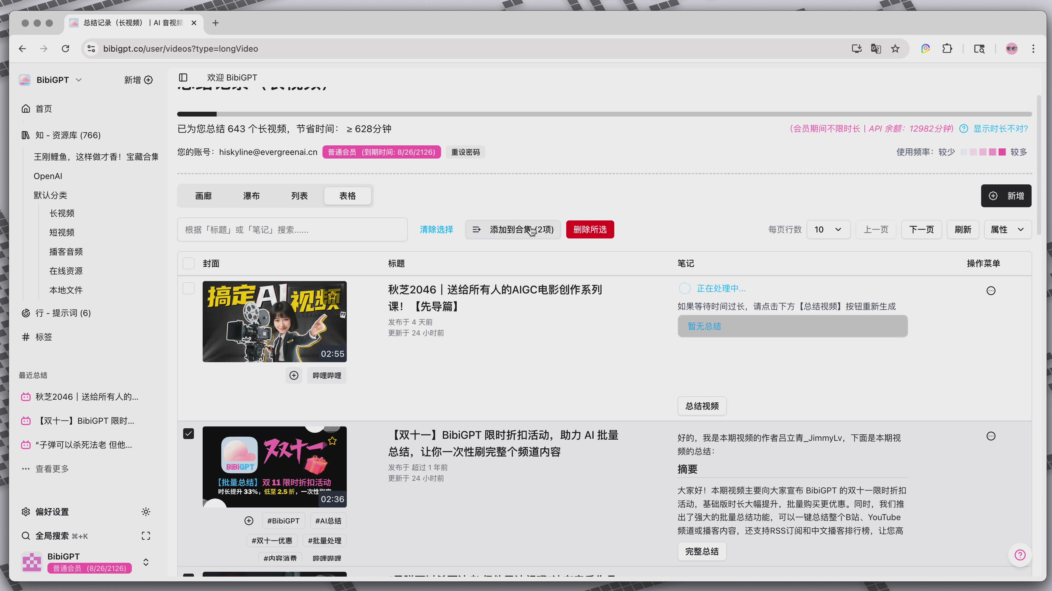 那么,这个"合集"功能怎么用呢?非常简单!首先,在你的BibiGPT"资源库"(也就是视频总结记录列表)中,你可以看到所有已经总结过的视频。