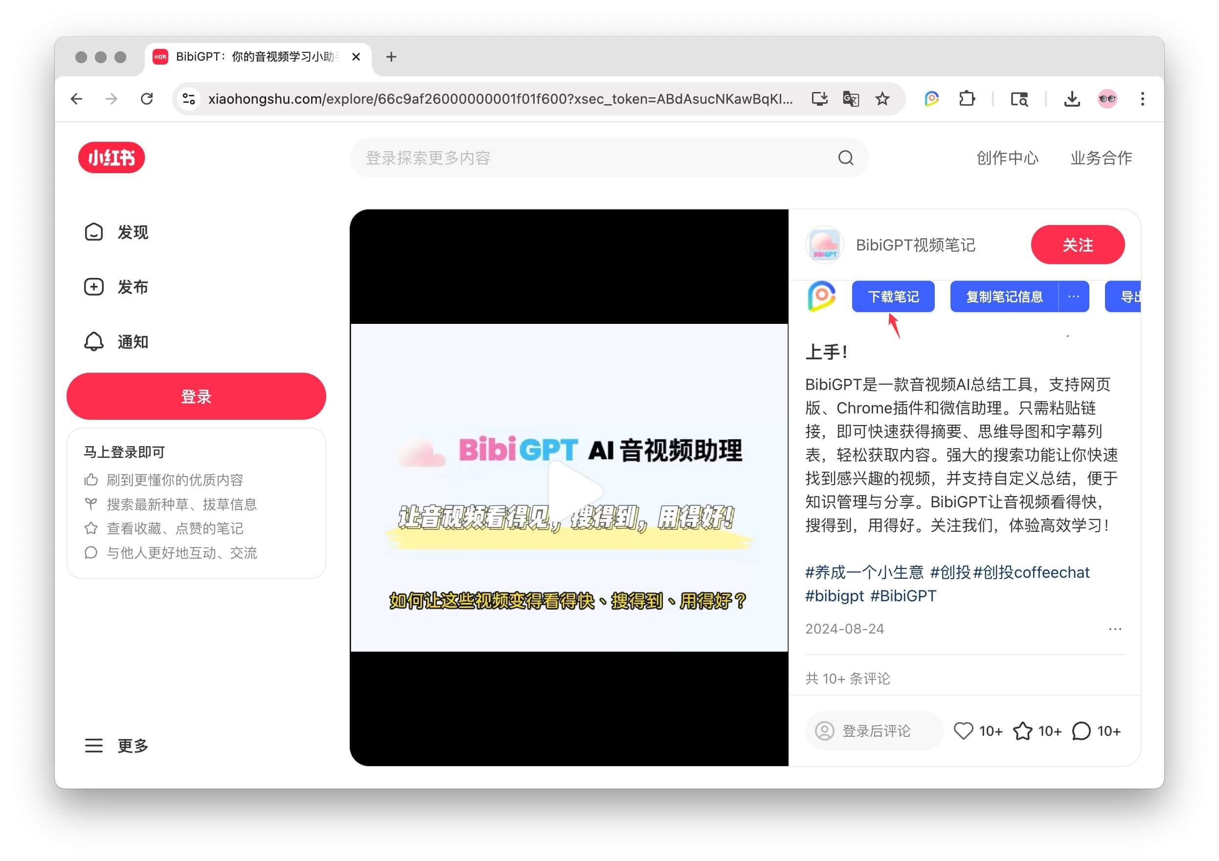 - 浏览目标内容:使用 Chrome 浏览器打开小红书网站,并找到你想要下载的笔记(包含视频或图片)。