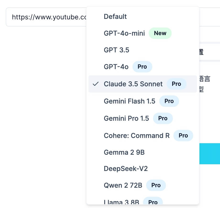 在BibiGPT工具中,选择使用的模型为Claude 3.5 Sonnet。