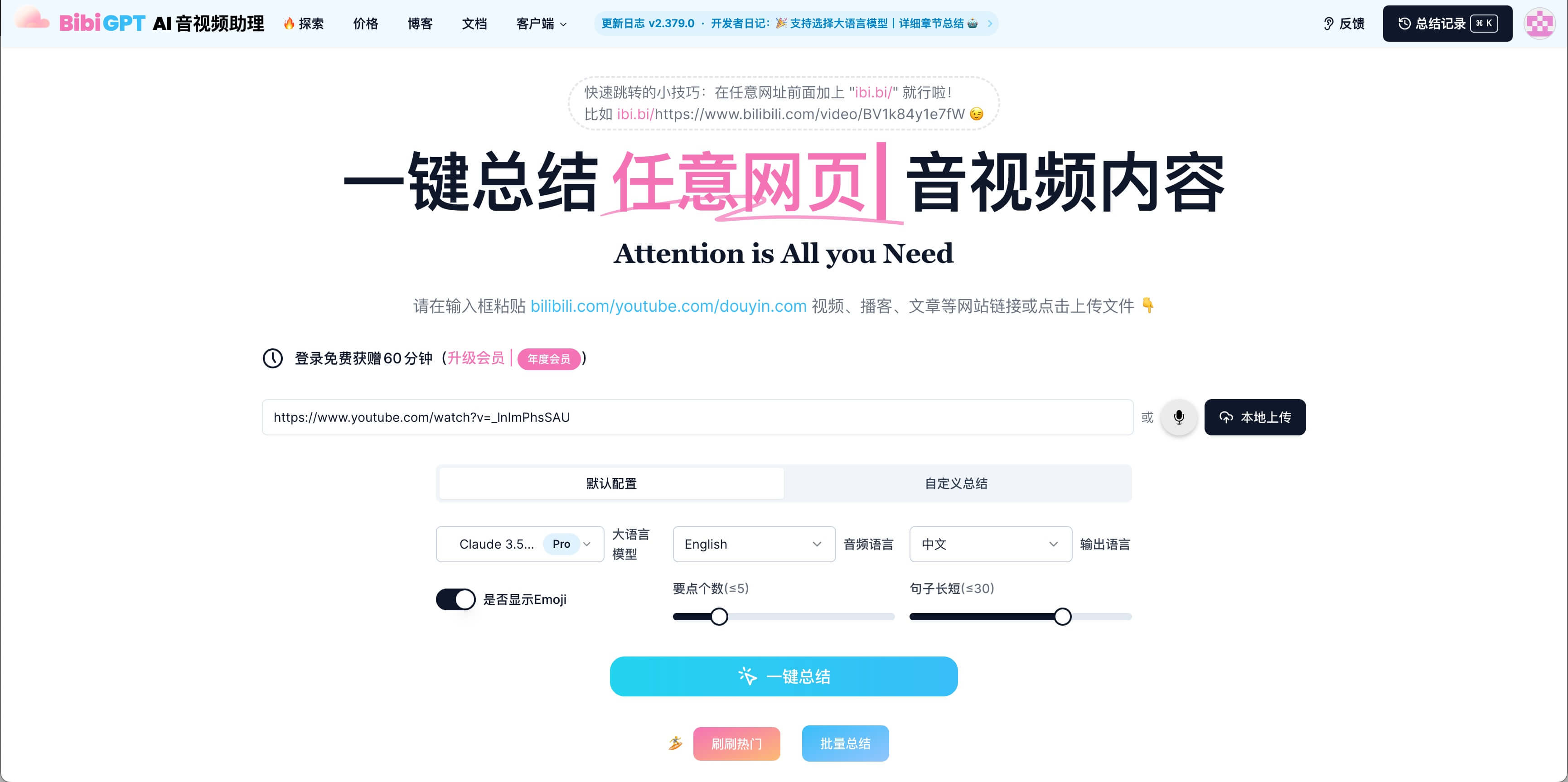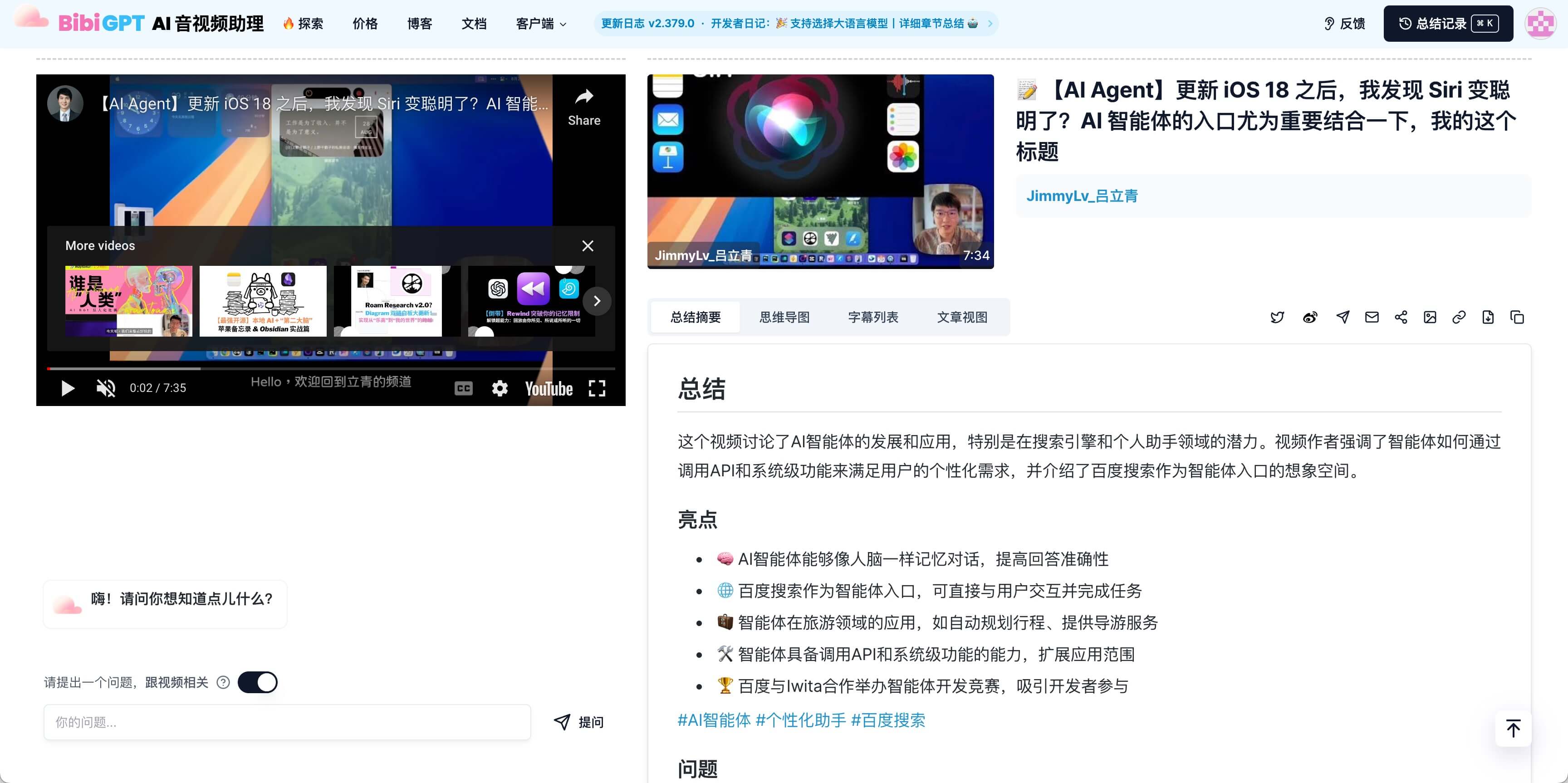 介绍BibiGPT:基于Claude的YouTube视频总结工具