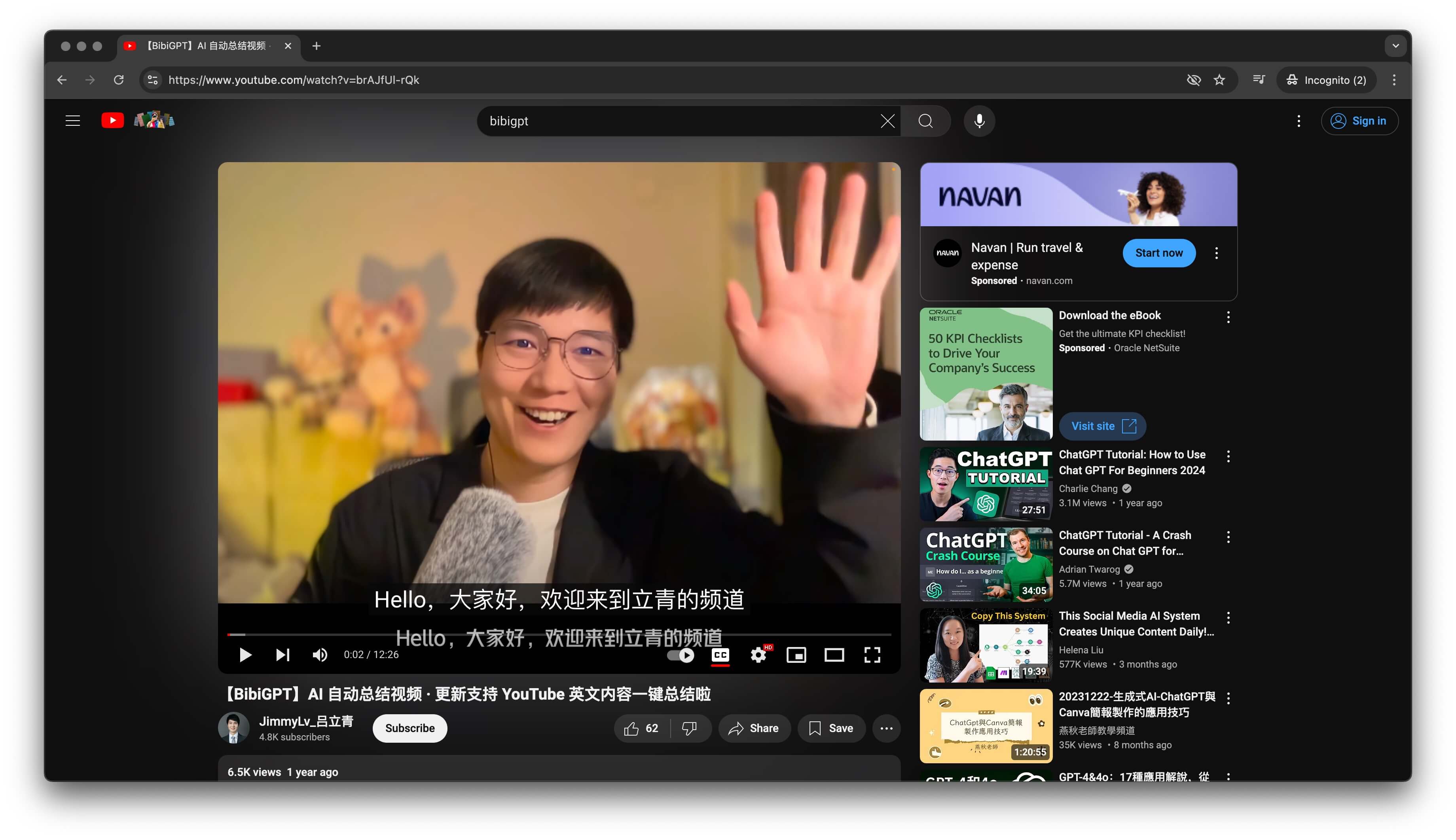 赶快试试BibiGPT吧,让您的YouTube视频总结变得前所未有的轻松和便捷!让音视频「看得快、搜得到、用得好」。